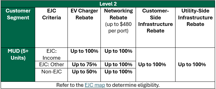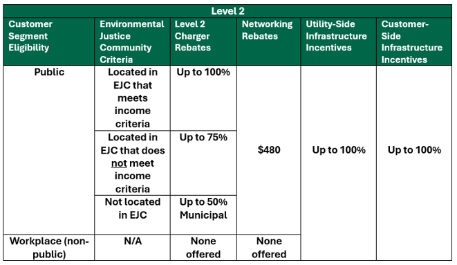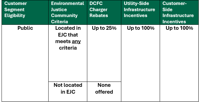 - Charger rebates depend on which criteria of the state definition of “environmental justice” the location of the charger meets