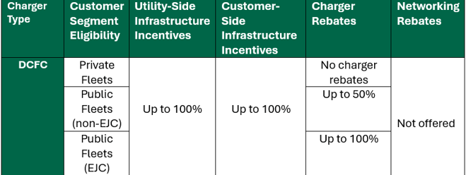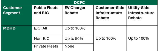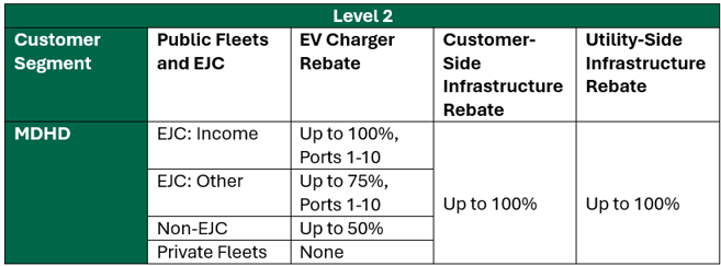 • Charger rebates depend on which criteria of the state definition of “environmental justice” the location of the charger meets